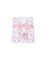 Explore toda a ternura e cuidado do Kit Cueiro da coleção Muito Mimo! Cada peça, com generosas dimensões de 80 cm x 80 cm, é confeccionada com tecido flanelado 100% algodão, garantindo maciez e aconchego para a pele sensível do bebê. Este kit é mais do que um simples cueiro, é uma expressão de carinho e elegância, adornado com uma aplicação bordada e um laço delicado que une o conjunto, transformando-o em uma opção de presente encantadora.