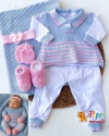 Saída maternidade feminina tricô 7 peças Azul com listras rosa na internet