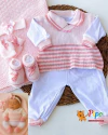 Saída maternidade feminina tricô 7 peças Rosa bebê listras rosê na internet